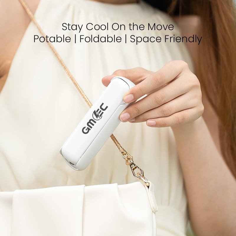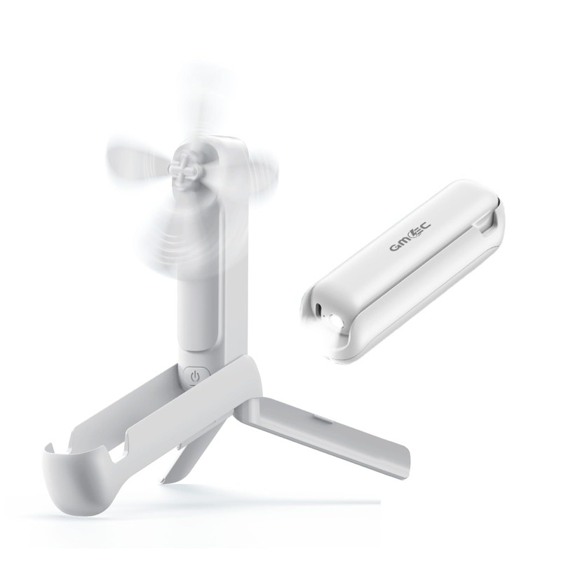 GMEC 3-in-1 Mini Handheld Fan with Phone Holder & Desk Stand - Portable Travel Essentials Mini Fan for Men, Women, Teens & Children - 3 Gear Speed, Rechargeable fan, USB Desk Fan & Torch - White