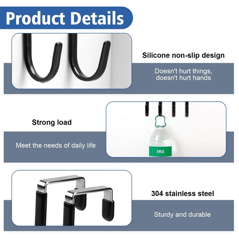 - MAXIMIZE SPACE: These single over door hooks feature a black rubber finish, high-quality and elegant, adding an instant sense of organization to your home. Each over door hanger can bear up to 22 pounds, which is stable and reliable, saves space and achieves large storage capacity