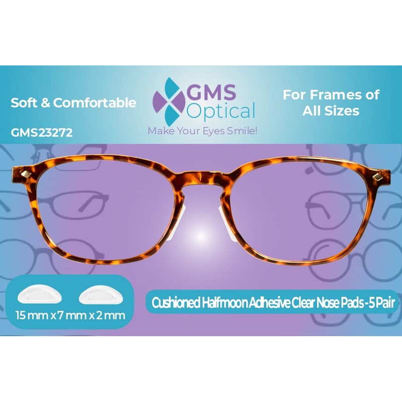 GMS Optical 2.0mm Regular Thickness / 15mm Medium Length - Air Cushion Adhesive Anti-Slip Contour Nose Pads - for Eyeglasses, Sunglasses, and Glasses - (5 Pair-2 Pack)(10 Pair Total)(Clear)