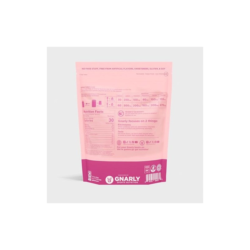 Gnarly Nutrition presents Hydrate Electrolyte Powder, a game-changer in workout hydration. Crafted to optimize performance, this powder is packed with vital electrolytes, essential for endurance during intense workouts, races, climbs, and outdoor excursions. It's the perfect companion for those pushing their limits. Gnarly Hydrate stands out with its thoughtful formulation: just enough sugar to deliver electrolytes and water effectively without causing gut discomfort. This balance ensures you stay fueled without feeling weighed down. Additionally, its gentle formula is easy on the stomach, quickly absorbed, and caters to various dietary needs. It's GMO-free, soy-free, and gluten-free, making it suitable for a wide range of diets.The powder's versatility adds to its appeal. Add Gnarly Hydrate to your marathon essentials. Simply mix one scoop or 2 tsp into 12-16 ounces of water for an individual serving or mix the entire bag into 5 gallons for larger hydration needs. Transparency is key with Gnarly. We provide full disclosure of our ingredients and our quantities, so you know exactly what you're getting with each serving. Each serving of Hydrate contains: 30 Calories, 250mg Sodium, 100mg Potassium, and 80mg Magnesium. With Hydrate, you can trust that you're fueling your body with the best. In summary, Gnarly Hydrate Electrolyte Powder is more than just a hydration solutionDit's a performance enhancer. Whether you're hitting the gym, pounding the pavement, or tackling the trails, Hydrate has your back, keeping you hydrated, energized, and ready to conquer your next challenge.