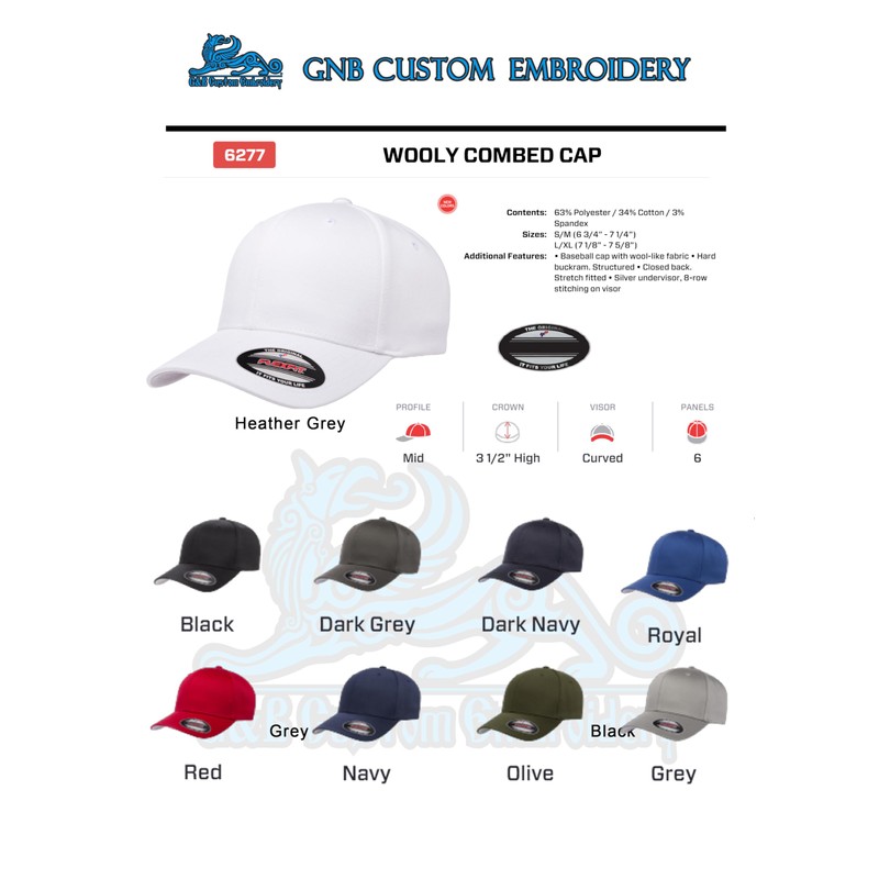 The Flex Baseball Wooly Combed Cap. Additional Features:Baseball cap with wool-like fabric Hard buckram. Structured Closed back. Stretch Baseball Silver undervisor, 8-row stitching on visor