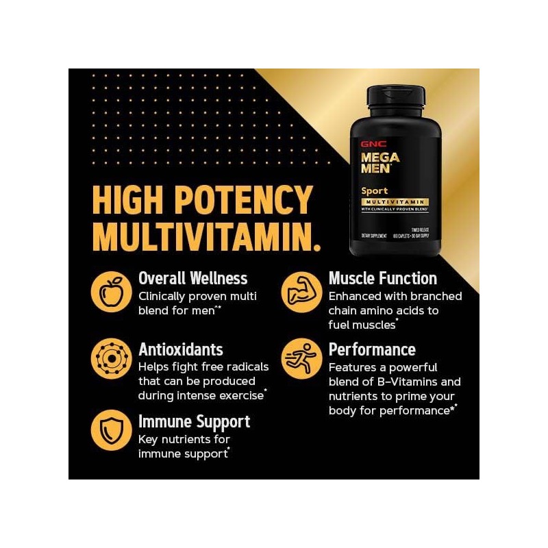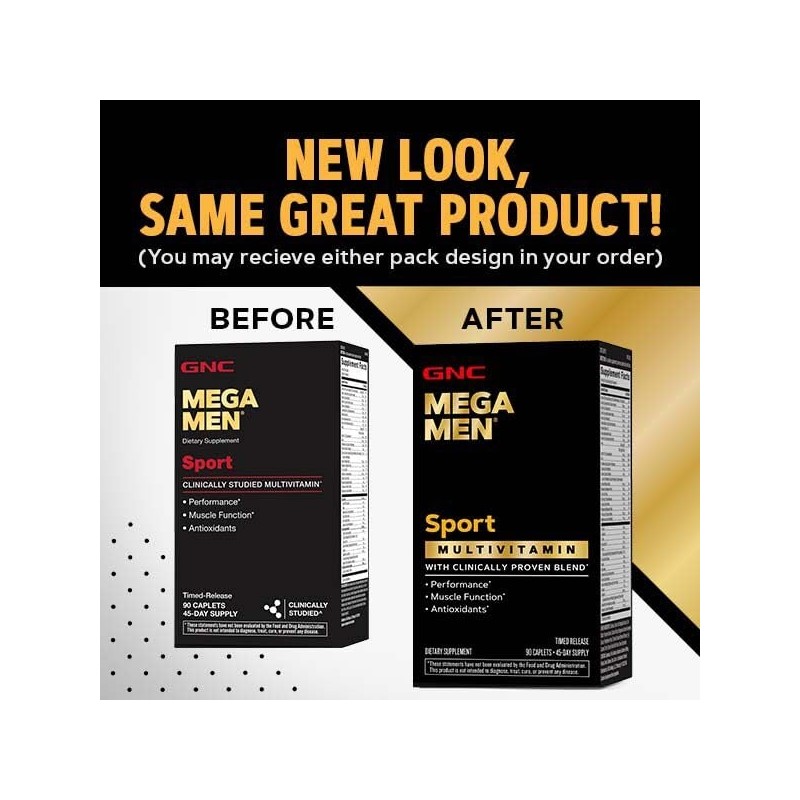 GNC Mega Men Sport Multivitamin Caplets, Athletic Performance Nutrition, Muscle Function, Clinically Proven to Feel Better, Antioxidants, B Vitamins, Energy Production, Timed Release, 90 ct, 45 svgs