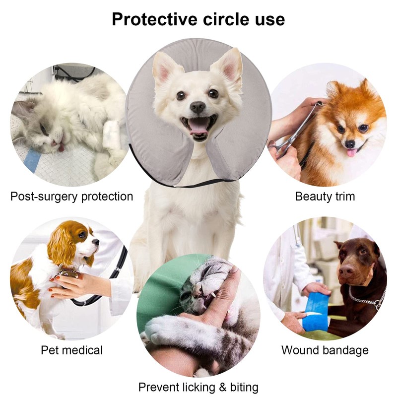 GNCLOUD Inflatable Dog Collars for After Surgery, Inflatable Recovery Collar for Small Dogs and Cats, Soft Cat Cone Collar, Prevent Dogs/Cats from Biting & Scratching,GREY-M