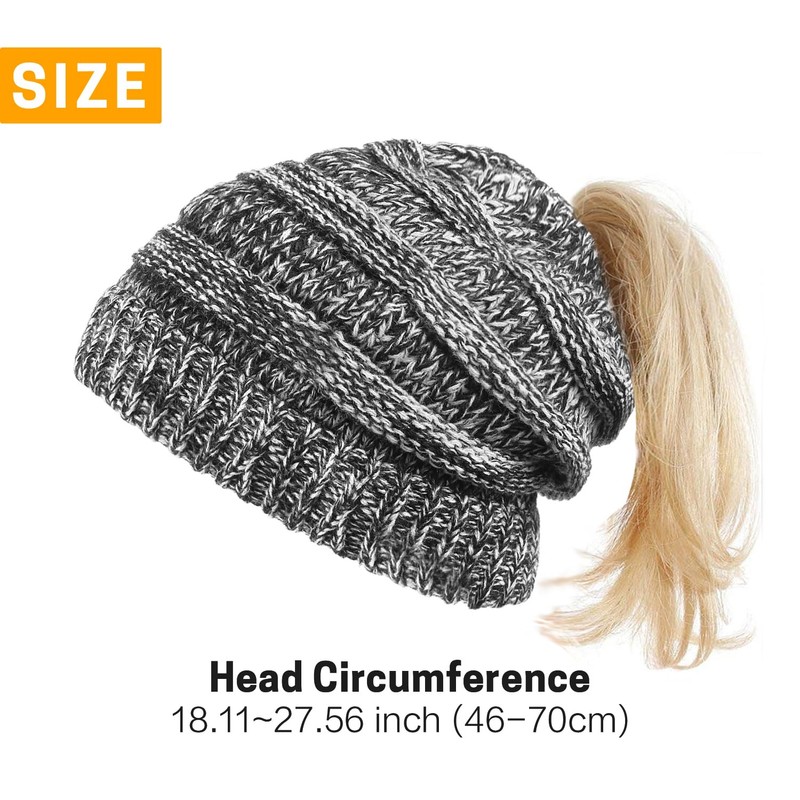 - Ponytail Hole: The ponytail hole design on the top of the knit hat allows you to easily pass it through your hair, making it easy to create a ponytail or bun. This hat is also very flexible. Whether you have curly, wavy or straight hair, it will add a touch of style to your winter look.