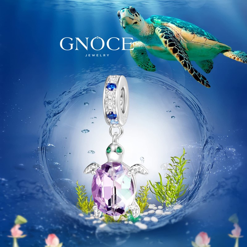 GNOCE Sea Turtle Pendant Charm 925 Sterling Silver Sparkling Charms Jewellery Gift Women Girls Fit Snake Chain Bracelets / Necklace, Silver