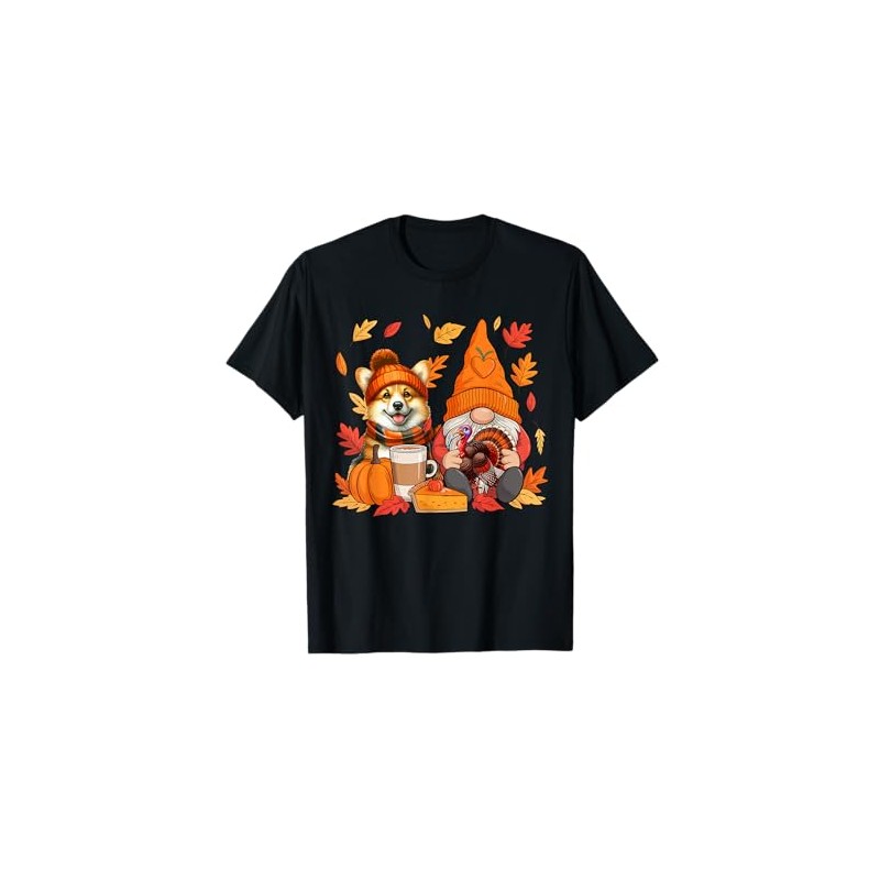 Gnome Turkey Corgi Thanksgiving Fall Leaves Pumpkin Pie T-Shirt