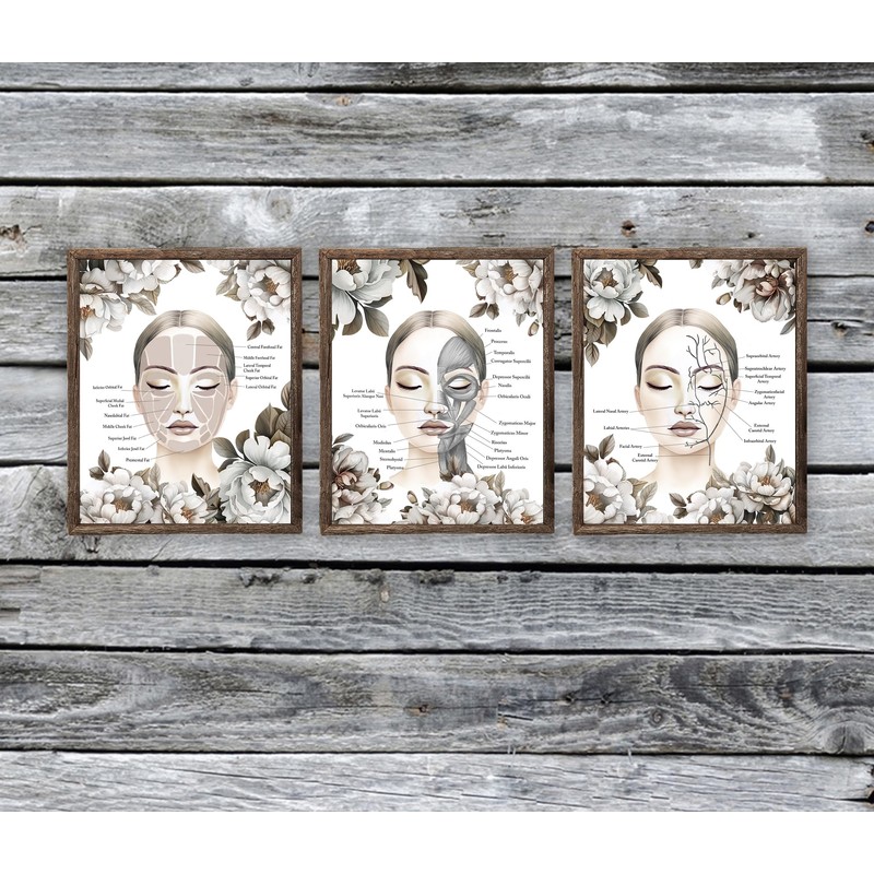 - Unmask the human face like never before! Are you a dermatologist, plastic surgeon, massage therapist, or medical student? Transform your clinic, office, or study space with our captivating set of 3 anatomy art prints. These prints are perfect for adding a touch of elegance and intrigue to your surroundings.