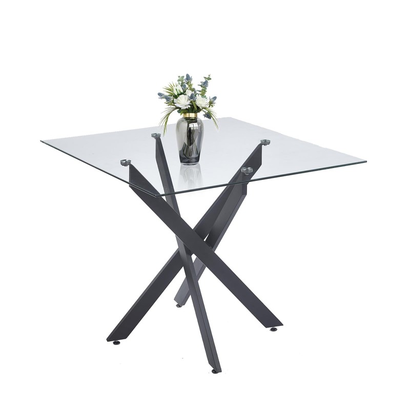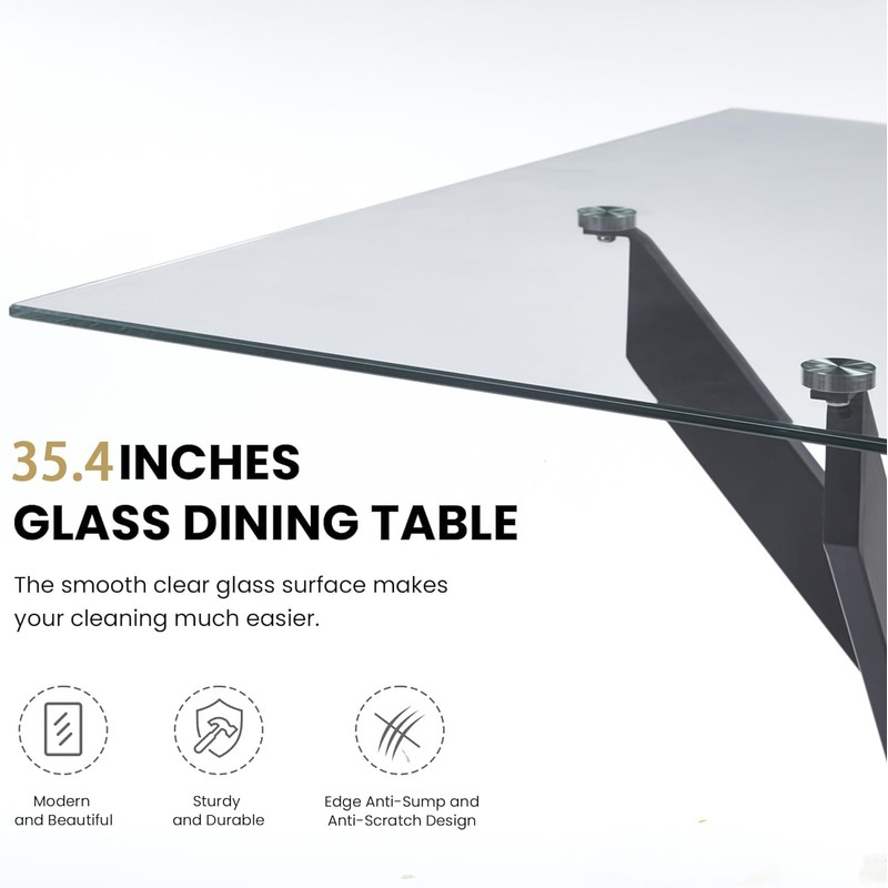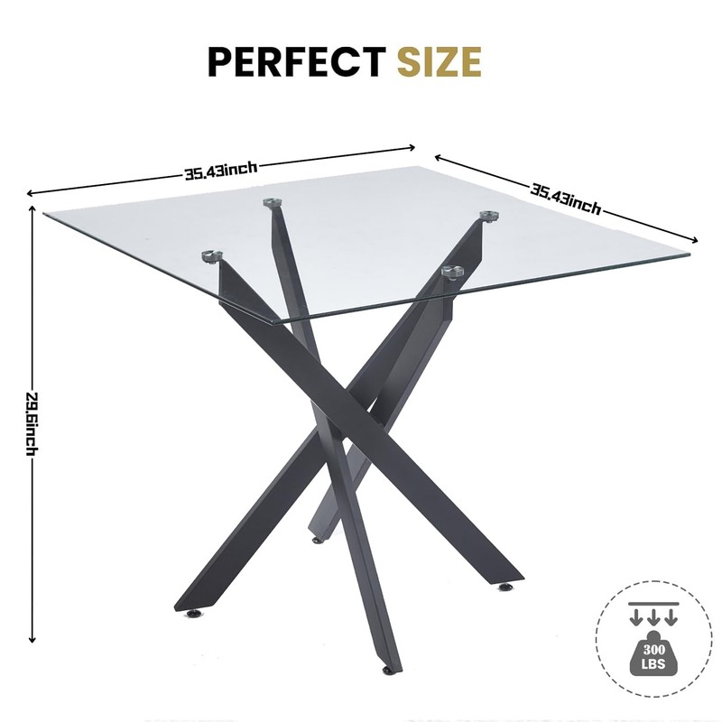 Gnrolaz 36'' Square Glass Dining Table for 2-4, X-Shape Black Metal Legs, Glass Tea Table Square Kitchen Table for Small Space