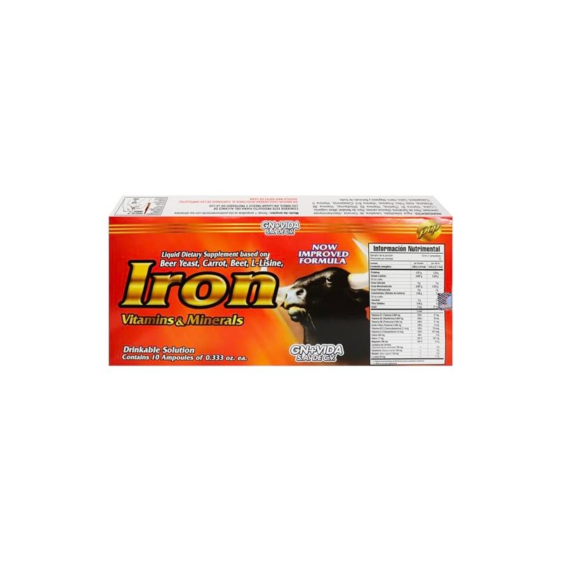 GN+Vida - GN+VIDA - Suplemento Alimenticio Ampolletas ingeribles de Hierro c/10 de 10 ml c/u a base de Levadura de Cerveza, Zanahoria, Betabel, L-Lisina, Hierro, Vitaminas y Minerales. ⭐ Calidad premium certificada con excelentes reseñas. Materiales de alta gama y acabados premium. 💝 Perfecto como regalo especial. Ideal para quienes buscan lo mejor en calidad y estilo. Producto auténtico con satisfacción total asegurada. ¡No te quedes sin el tuyo y aprovecha esta oportunidad única!