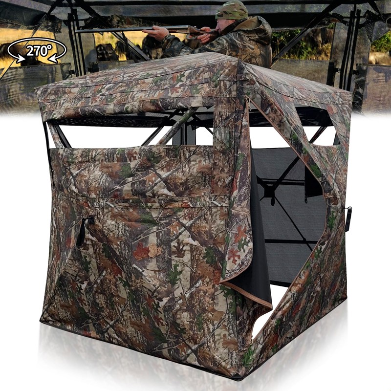 GNYFRAZ Hunting Blind 270 Degree See,2-3 Person Pop Up Ground Blinds,Portable Hunting Blind for Deer Hunting Turkey Hunting (2-3 Person 270°)