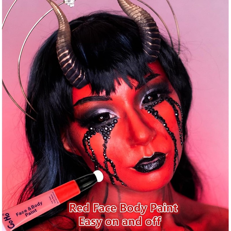 - 【Cream Red Face Body Paint Wand for Halloween Makeup】Red Face Body Paint Washable.Soft and moderate consistence.Nor too thick or too runny.Good coverage.Go on smooth.Easy to blend.Easy on and off.No cracks and flakes.No fading.No splotchy and patchy.No stains.Perfect for SFX cosplay makeup.
