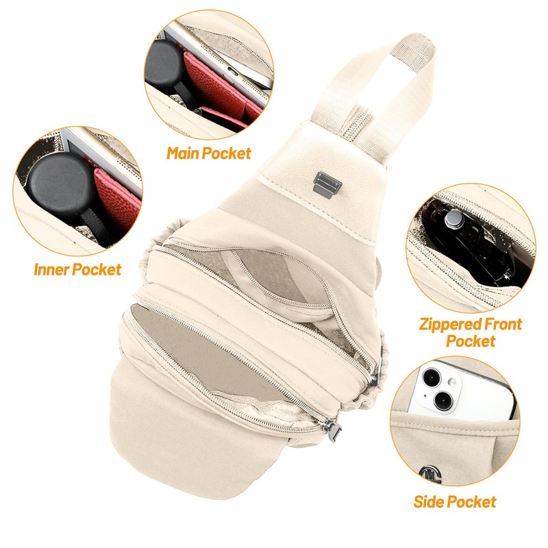GoaePode Leichte Sling Bag für Damen & Herren - Brusttasche Klein mit Metallverschluss & Handgriff - Verstellbarer Crossbody Schulterrucksack aus Nylon für Reisen Radfahren Outdoor (Beige)