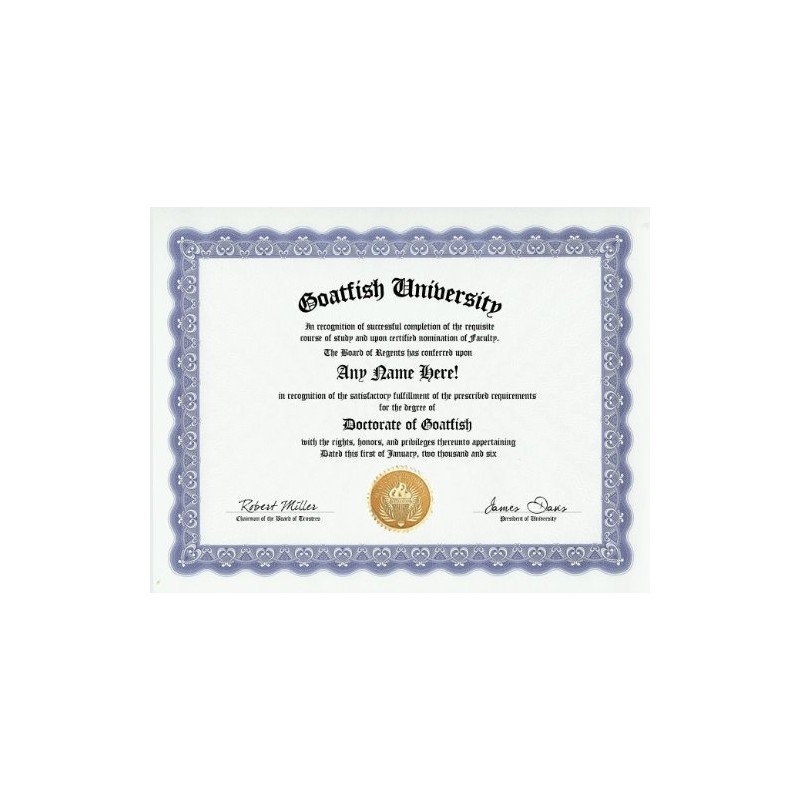 Goatfish Degree: Custom Gag Diploma Doctorate Certificate (Funny Customized Joke Gift - Novelty Item)