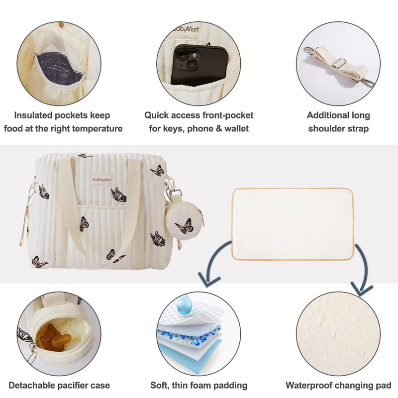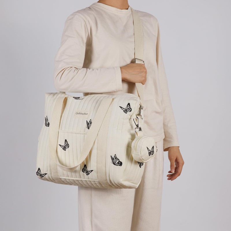 GOBABYMART Large Diaper Bag Tote, Maternity Travel diaper tote, Multifunction baby bag, Baby Nappy Bags, Messenger bag (Medium - Beige Butterflies)