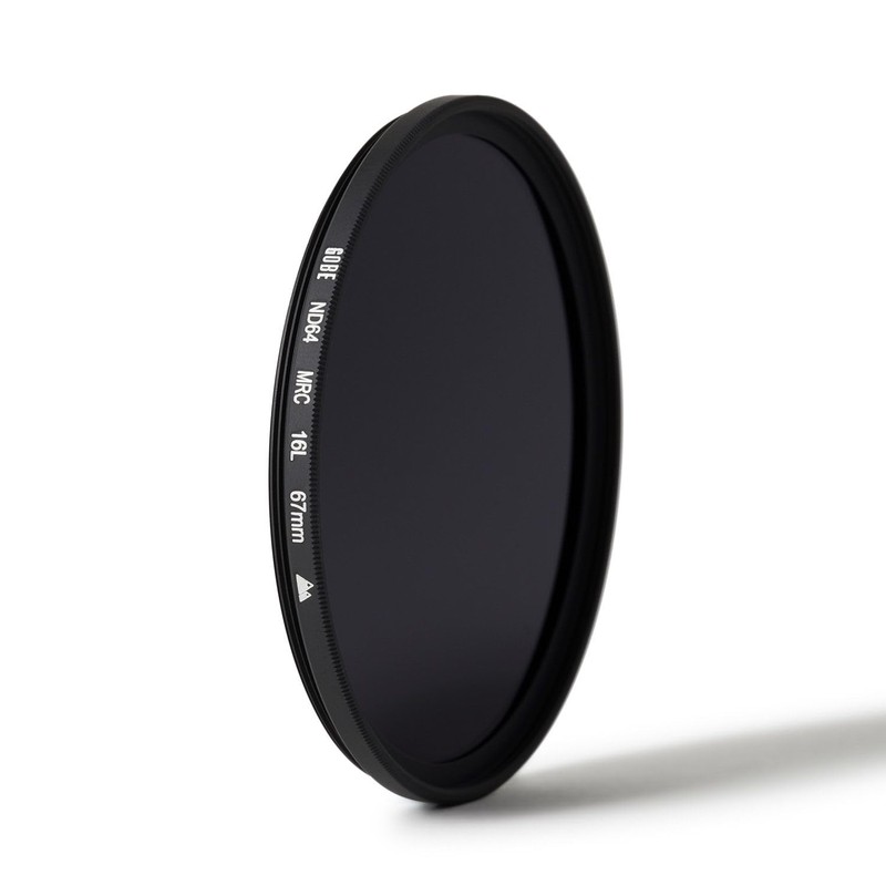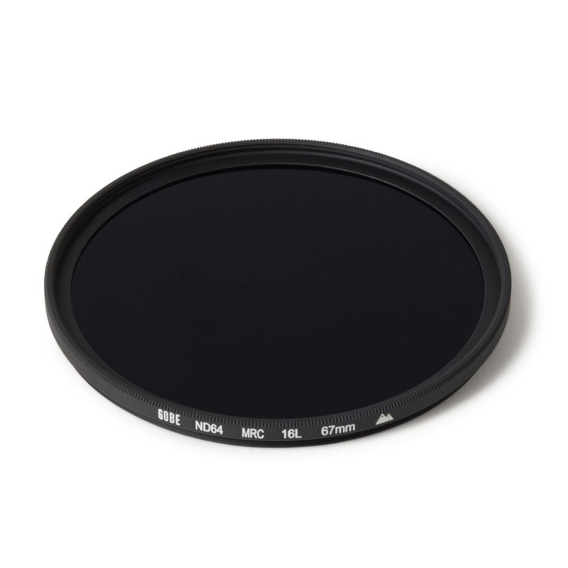 - 6 F-STOP REDUCTION | Gobe Neutral Density ND64 provides a fixed 6 f-stop light reduction, which allows long exposure and motion blur techniques in bright light. Recommended for landscape photography.