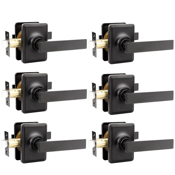 GOBEKOR Matte Black Passage Lever Door Handle with Lock Black Keyless Passage Door Locks for Hall Closet Keyless Reversible Door Lockset with Greenwich Trim 6 Pack
