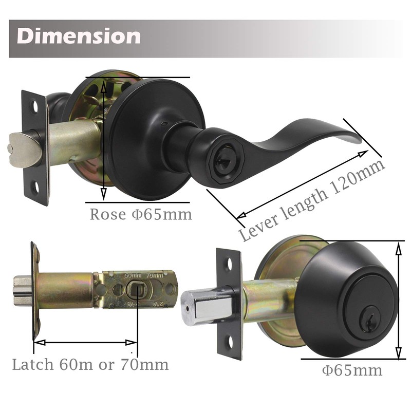 - HIGH QUALITY LEVERS.Made of Zinc Alloy,firm and heavy duty for residential and commercial applications.Black finished door locksets.Lever length-120mm.Rosette diameter of lever/deadbolt-65mm.