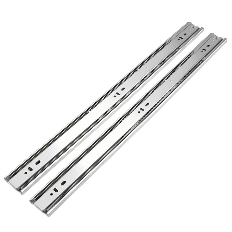 This Full Extension drawer slides can bear heavy weight and feature unique smoothly mute effect. For applications such as filing cabinets, desk pedestals and general storage drawers.Ultra smooth soft-close function make the drawers closed without slamming shut. Enjoy opening and closing the drawers silently.The drawer slides can be rear mounted with the brackets on the framed drawers.