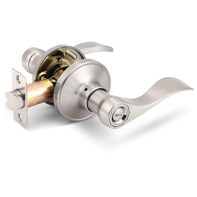 Gobrico Universal Wave Style Lever Door Knob Handle Pull Lock Privacy for Bedroom and Bath, Satin Nickel,1pack