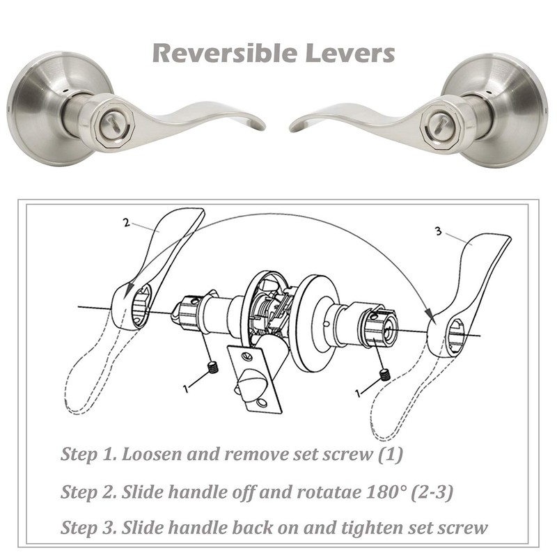 - EASY INSTALLATION--All accessories included(Latch,strike plate,screws). Can be installed in minutes with a screwdriver. Refresh your house by yourself with a satin nickel finished lockset .