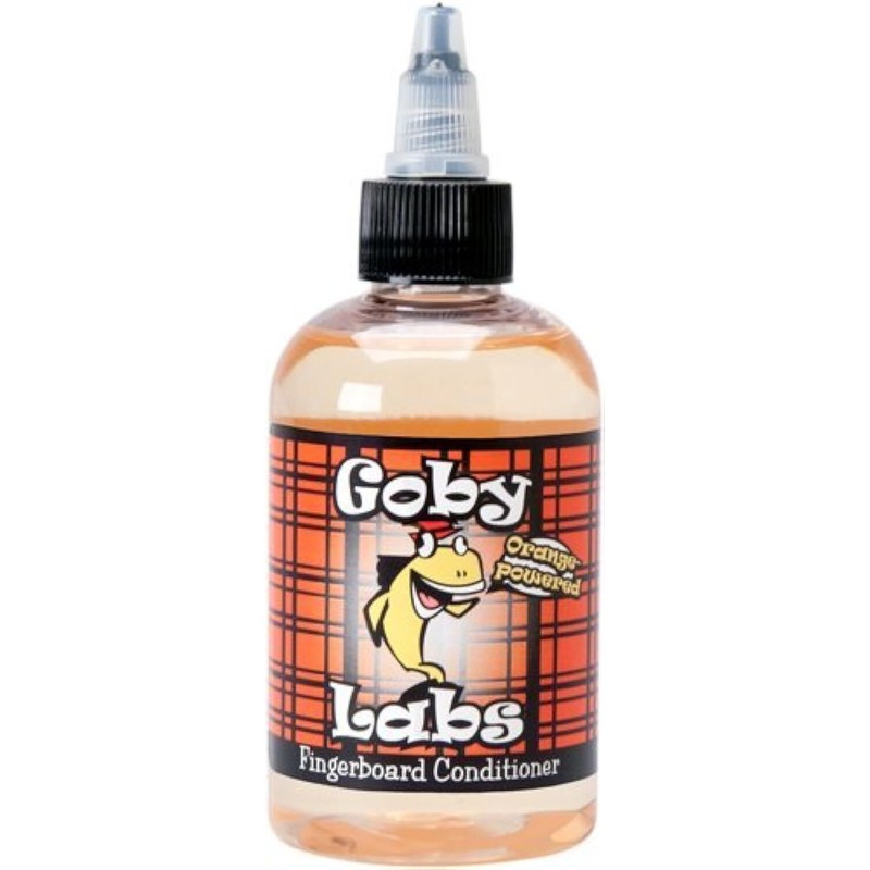 Goby Labs Fingerboard Conditioner is formulated to restore the natural beauty of your porous-wood fingerboard. Orange oil lifts finger grime from frets and fingerboard alike, making your guitar play as fast as the day you bought it.