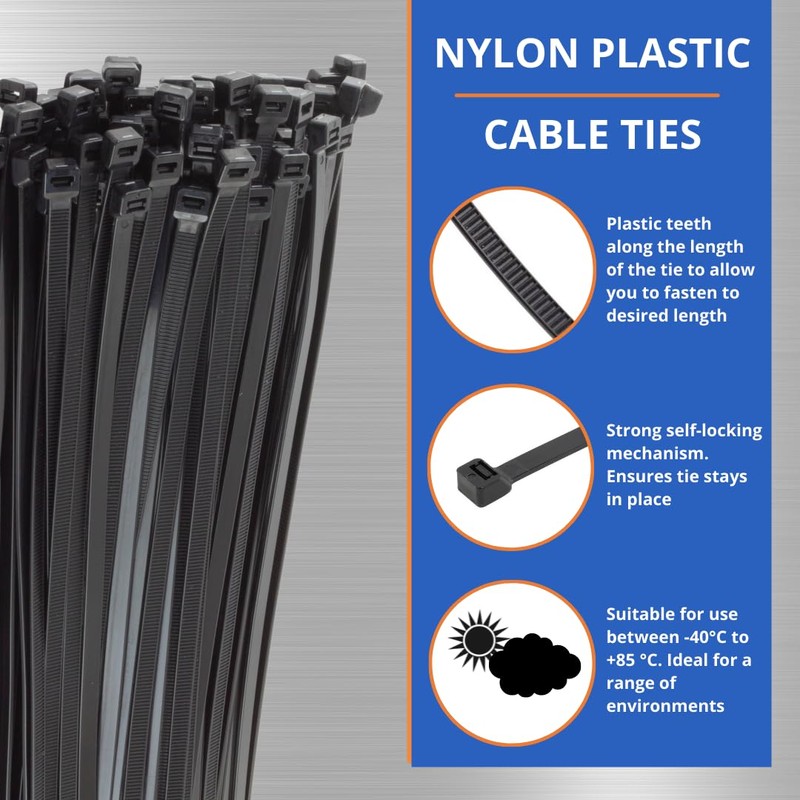 - UV RESISTANT: Provides good resistance to weathering and aging. Our cable ties can be used indoors or outdoors to give greater versatility. Suitable for use between -40°C to +85 °C making them the perfect solution for a range of environments.