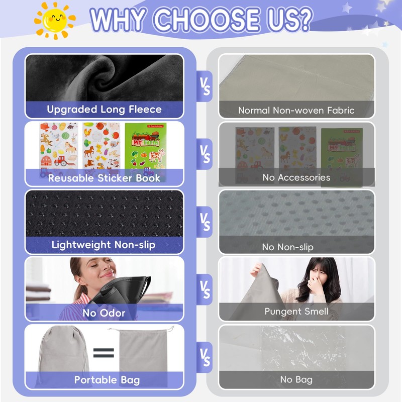 - Fun or Quiet Travel: Toddler airplane travel essentials come with reusable sticker book, toddler can travel for fun and focus on it. Put down the phone and quiet in journey.