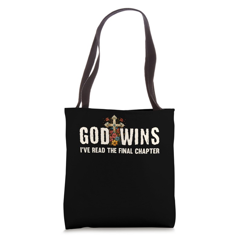 God Wins I've Read The Final Chapter Jesus Floral Cross Tote Bag