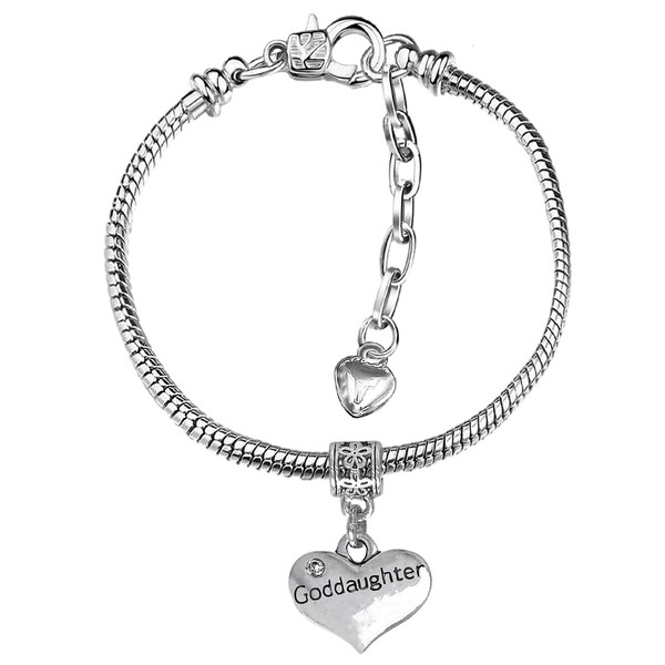 - Bracelet Includes: Girls 16cm Adjustable Silver Plated Charm Bracelet, 1 x Goddaughter Heart Pendant with Sparkly Rhinestones, 1 x Gift Box