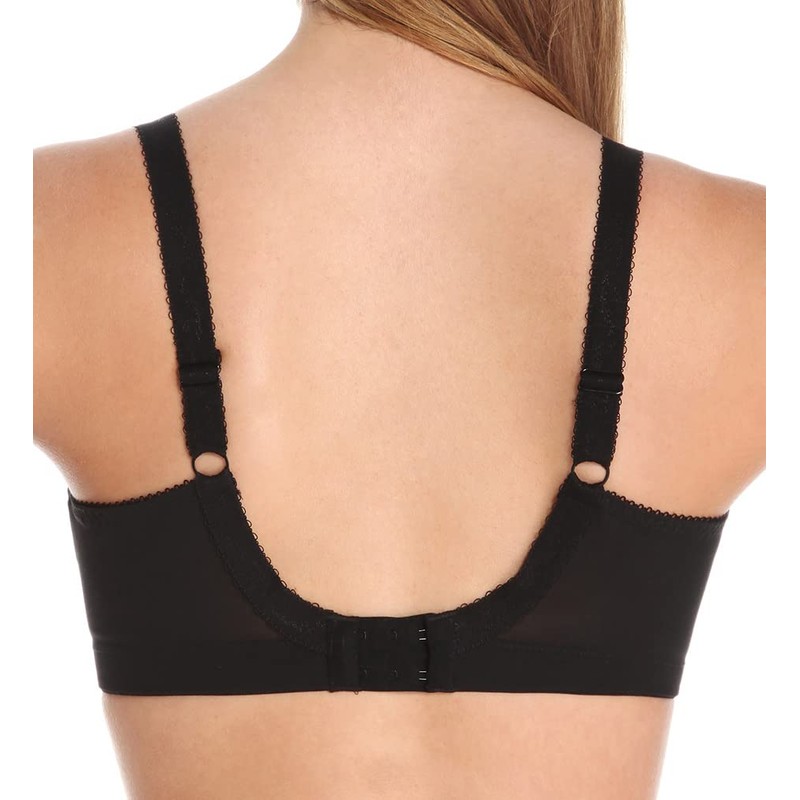 • Soft-cup bra featuring sheer upper trim and wide adjustable straps with scalloped edging