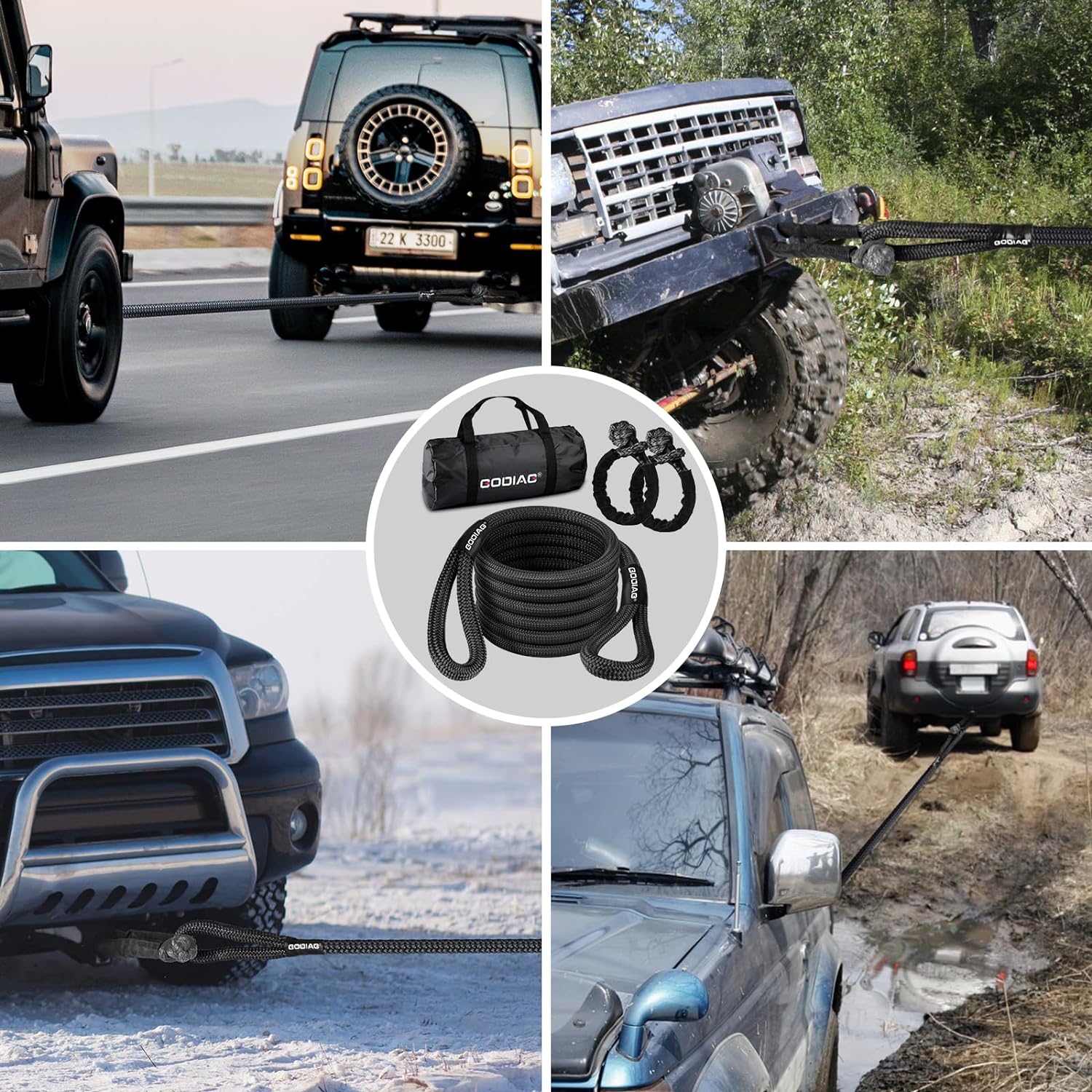 - Safety Precautions: Considering various factors such as slope, road conditions, and instantaneous acceleration during towing, we recommend utilizing heavy-duty recovery ropes with higher load capacities to ensure safe and effective vehicle recovery operations. Our GODIAG snatch rope has undergone rigorous quality inspections, making it an ideal choice for trucks, jeeps, pickups, and other small vehicles, providing peace of mind in every recovery situation.