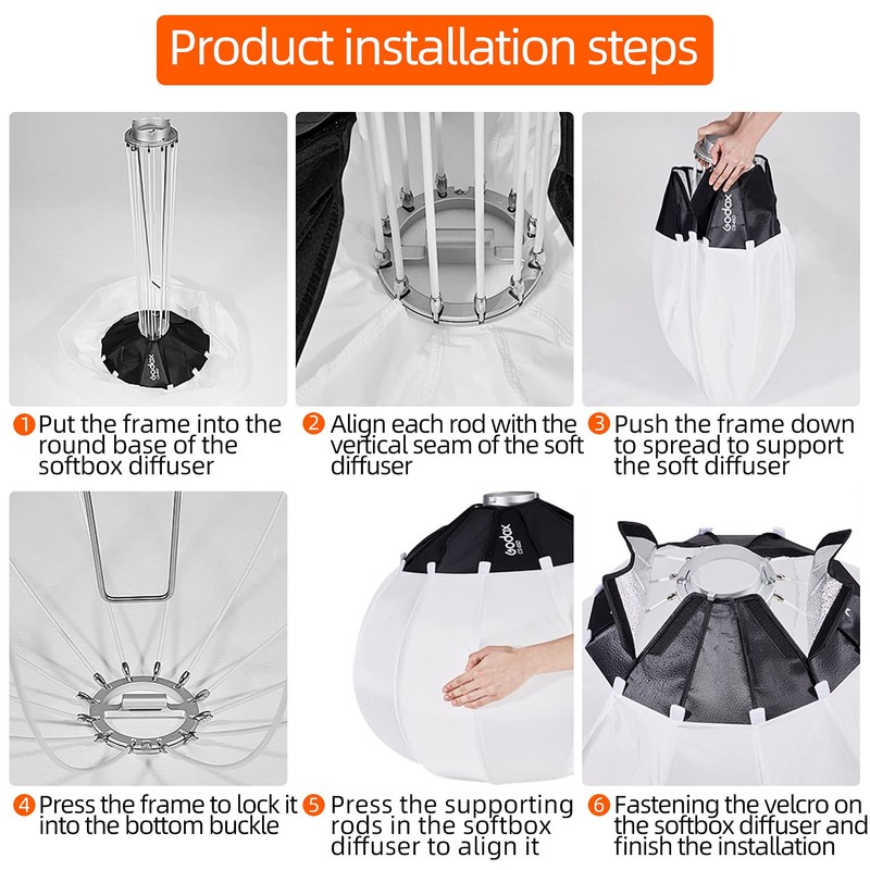 • Integrated Lantern Frame, Extremely Fast Installation: The Lantern could be peopped open or closed in merely few seconds,making it a quick solution on the use. Simple and durable design makes the collapsible softbox convenient to set up or pack up.