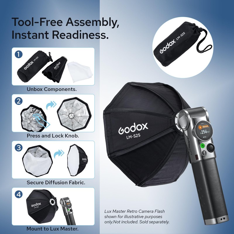 Godox LM-S25 Octa Softbox for Godox Lux Master Retro Camera Flash, Portable Softbox Diffuser with Carry Bag, Producing Soft Natural Light