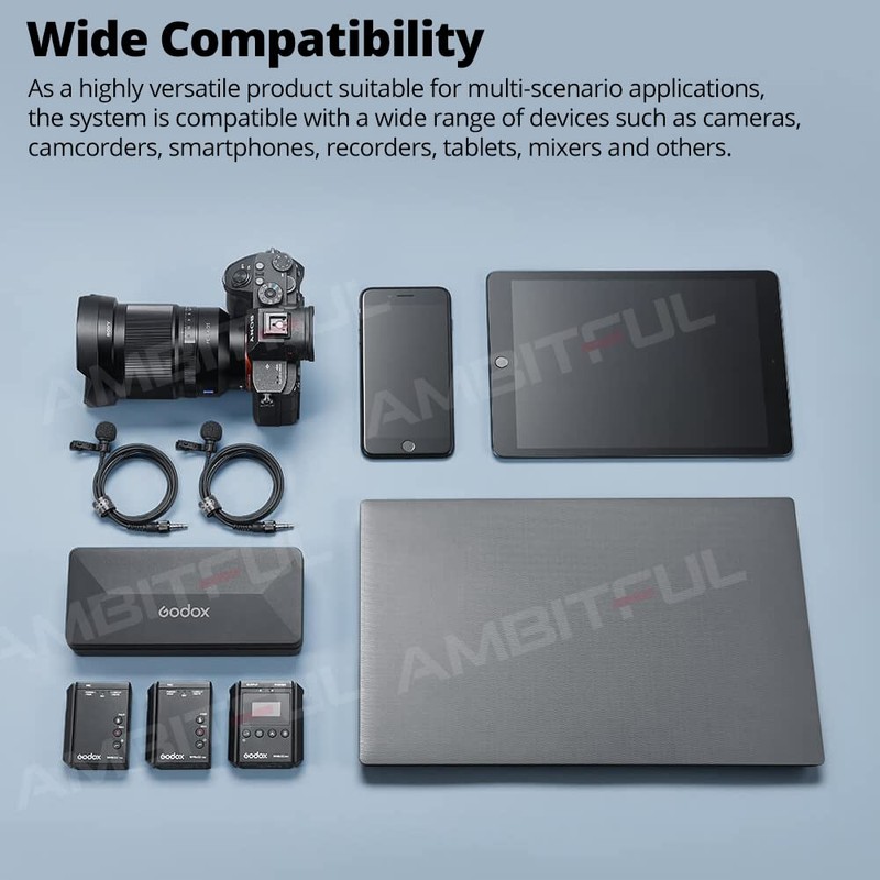 - The black MoveLink II M1 from Godox provides an easy-to-use and cost-effective entry into the world of hands-free wireless audio for a wide variety of content creators.The system offers an ultracompact clip-on microphone/transmitter, a lavalier mic, and a two-channel, camera-mountable receiver to provide a portable, all-inclusive solution that lets you record a subject's audio to a camera or phone with a 3.5mm input jack.