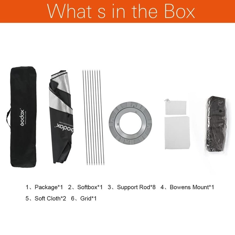 - ✅Godox Softbox octagonal that does not fold up like an umbrella, it is a detachable component with a separate speed ring from the strip box and folded and packed for easy storage.