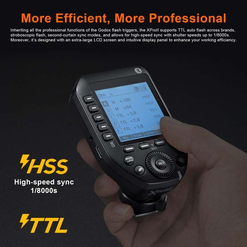 • ✅【16 Groups and 32 Channels】Godox XProII has a total of 16 Groups and 32 Channels, 01 to 99 Wireless ID settings,Easy wireless control and triggering. The new SCAN function allows you to quickly find the applicable channel in multiple flash scenes, improving your work efficiency