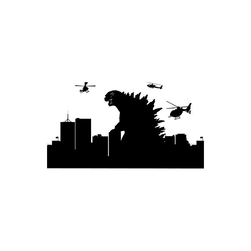Godzilla Attacking The City Wall Decal Sticker 40" Wide x 22" Tall Matte Black Color