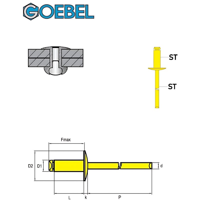 - Contents: 250 x Goebel blind rivets, steel/steel, 4.8 x 10 mm, 7081348100 standard