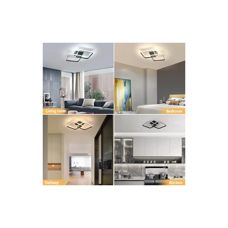 - Modern Ceiling Lamp - Indoor LED ceiling lamp consists of 2 square lamps with 30cm side length, diagonal cross, geometric elements combined with modern decoration. Ideal for bedroom, living room, kitchen, dining room, office, flat, loft