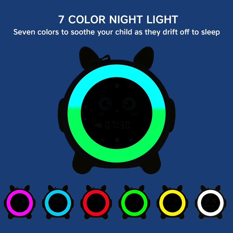- 7 Colorful LED Night Light: This kids alarm clock has 7 colors changing LED night light, which can be used as a soft night light in the dark or as a colorful atmosphere light in the bedroom. It's a great choice for children who are afraid of the dark.