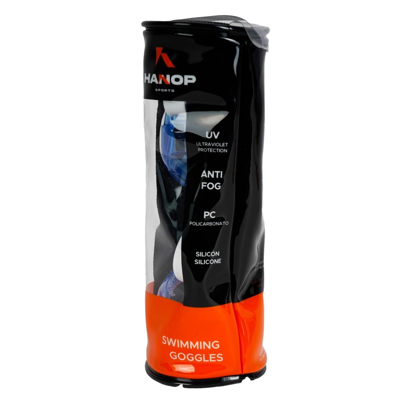 Goggles de Silicón Hanop de Adulto para Natación, Visión Clara no se Empañan, con Filtros UV para Entrenamientos en Alberca o Aguas Abiertas. (AZUL)