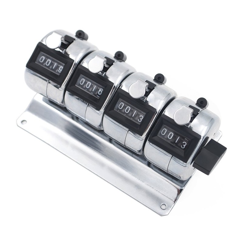 GOGO カウンター 数取器 計数器 数取り器 4連式 4桁の数字 卓上型 ベーススタンド付き 金属 手動測定 リセット可能