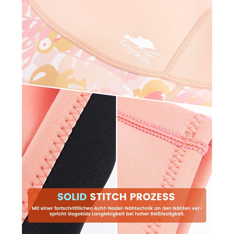 - 2.5 mm SCR neoprene – The Gogokids children's thermal wetsuit is made of flexible, double-sided SCR fabric and a total thickness of 2.5 mm, which ensures warmth and durability for your children's water activities. The Gogokids wetsuit promises flexibility and allows your child to move freely and easily.