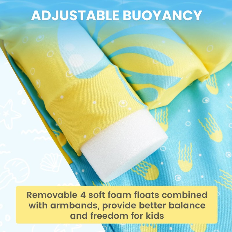 - Adjustable Buoyancy for All Stages: Add or remove buoyancy sticks to match your child’s swimming progress, helping them build confidence and improve swimming skills step by step.