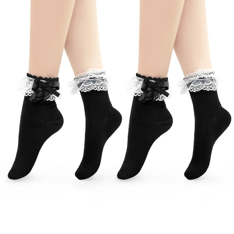 - Stylish design: white ruffle lace socks for women with delicate ruffle and lace details that add a touch of elegance and charm to any outfit. Perfect for women and girls