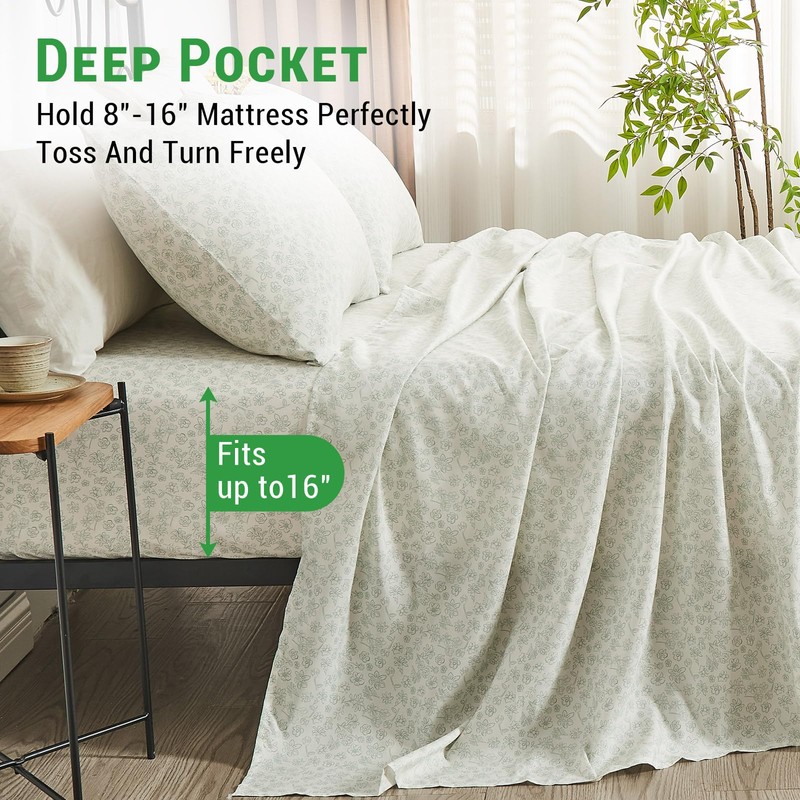 - DEEP POCKET & EASY CARE - The deep pocket queen sheet set, fitted sheet is suitable for thick mattress up to 16 inches (360° elastic, so it can stretch, NEVER ripped and slide). Our sheet set are machine washable in cold water and dry quickly on tumble.Gentle mode machine washing, with temperature control at 35 ℃.