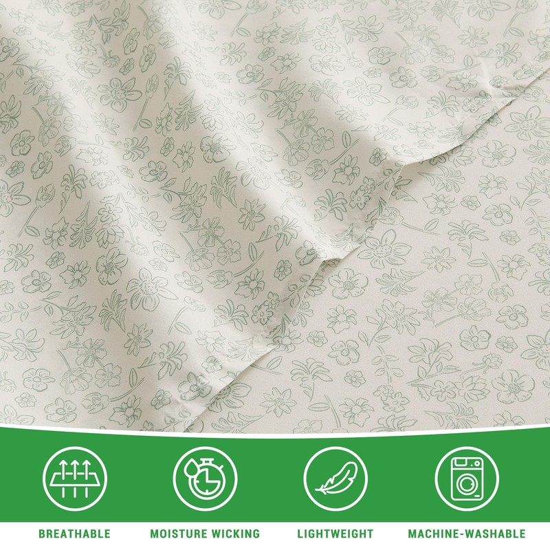 Gogreen 4PC Deep Pocket Queen Sheet Set Fit 16", Breathable Microfiber Soft Queen Size Sheet Set, Hotel Style Bed Sheet Set, Gift for Women, Men - Flower Sketch