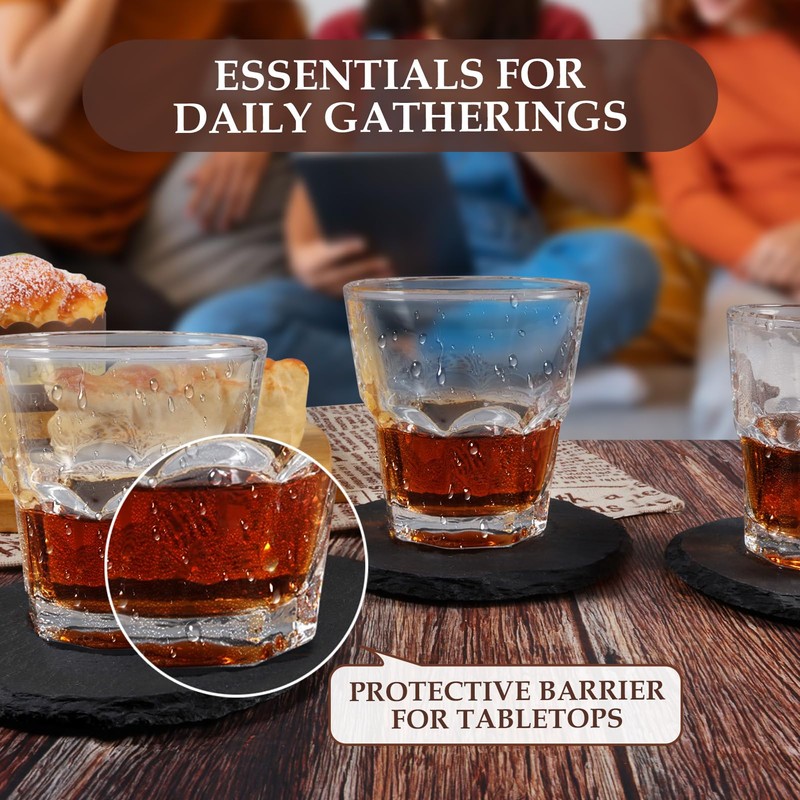 • FITS ALL KINDS: bourbon, highball, lowball, whiskey glasses, coffee mugs, tumblers, flasks, mason jars, and large fountain drinks. Prevent condensation from leaving any stains or water marks on your countertop, bar, or tabletop surface.