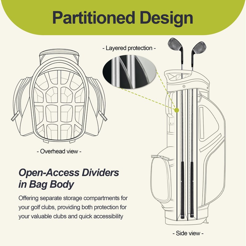 - 【Unparalleled Club Protection】: Fed up with the constant clanging of your valuable clubs? Our golf bag proudly features an ingenious 14-way divider system that secures each club in its individual compartment. Bid farewell to unsightly scratches and damage from club-on-club contact.