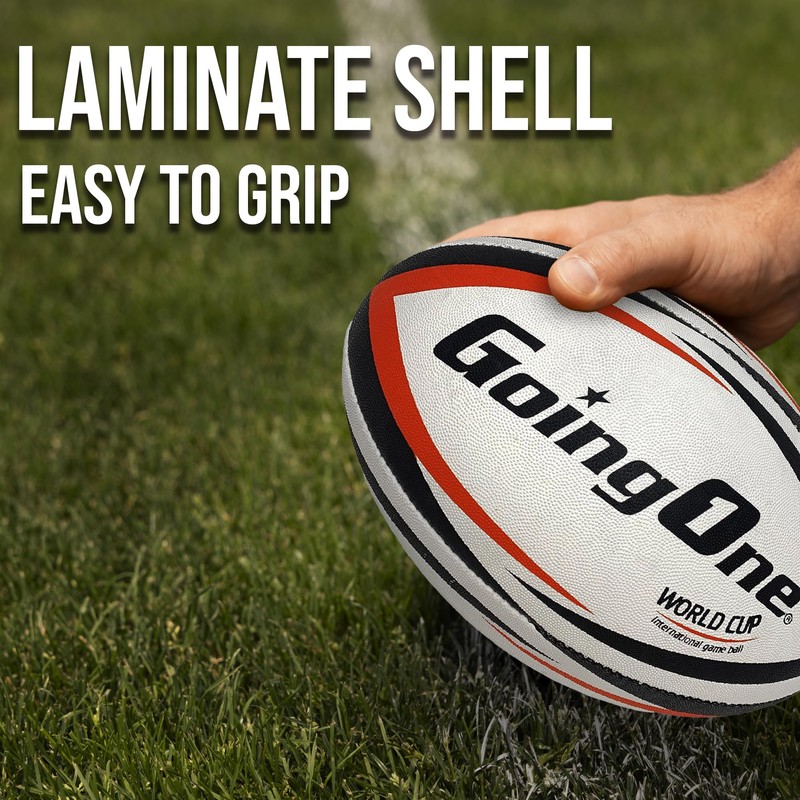 The Going One Match Rugby Ball is made for amateur-level matches, whether on the school field, college pitch, or local club grounds. Favored by high school players, college players, and coaches, it’s designed for both indoor and outdoor use on grass and turf, making it a reliable choice throughout the rugby season. Its synthetic laminate shell offers excellent grip and control, while the textured surface allows for accurate passing and consistent handling. This Size 5 rugby ball features a durable synthetic build with a latex bladder, ensuring great shape retention, good rebound, and resistance to wear and impact during intense games. This ball can be used to improve performance, and in drills or gameplay to develop hand-eye coordination and tactical passing. Its white, black and red color enhance visibility during fast-paced action, making it a great choice for players who demand consistency, durability, and control. Inflate to 7–9 PSI using a ball pump (pump not included).